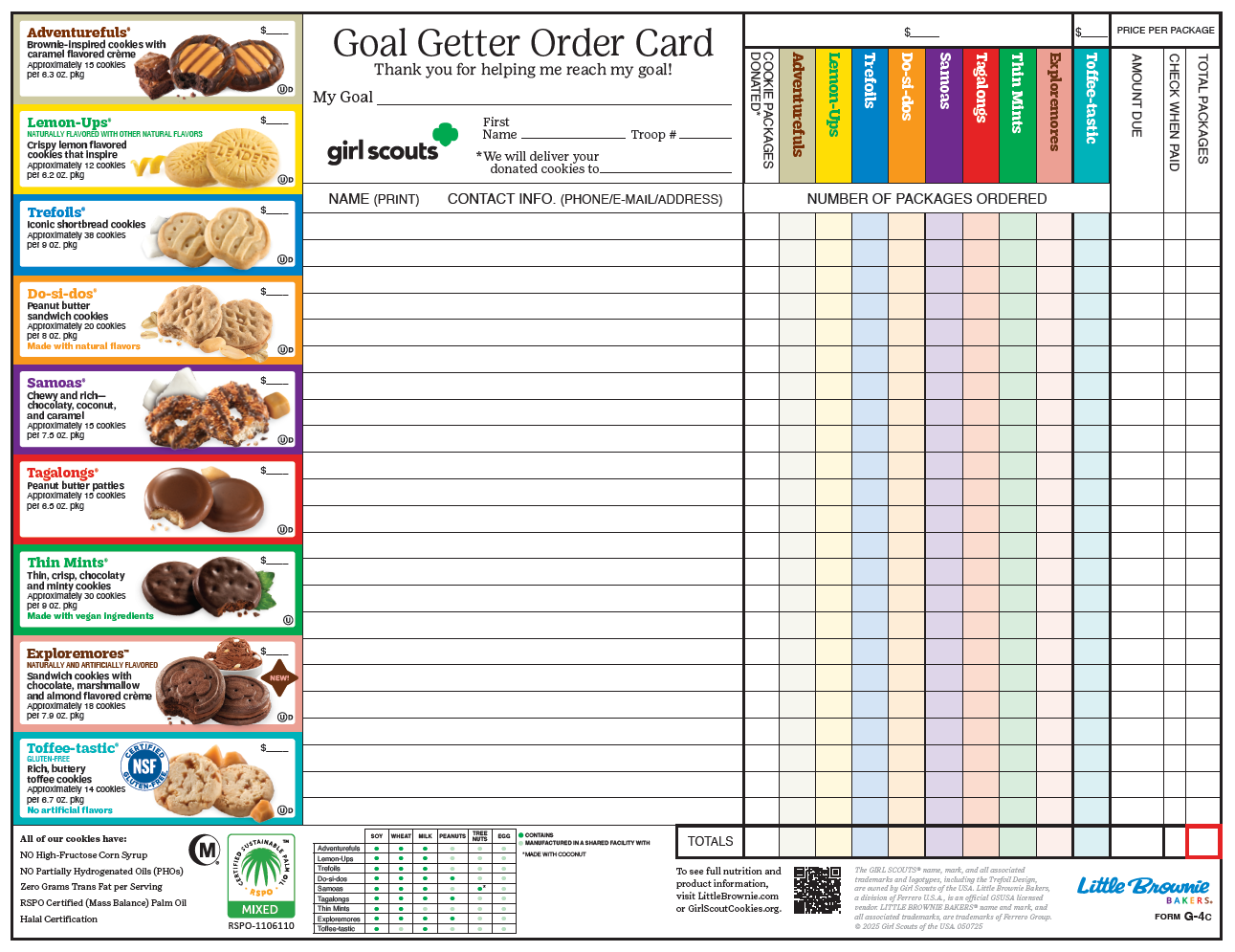 Goal Getter Order Card - Color, Interactive